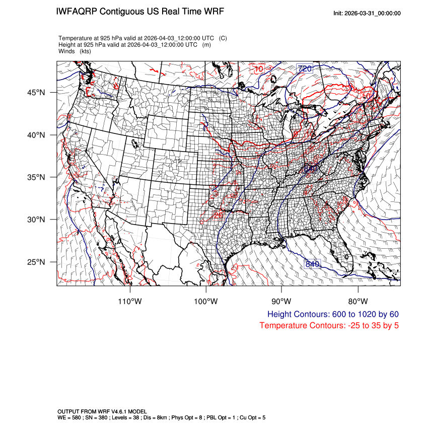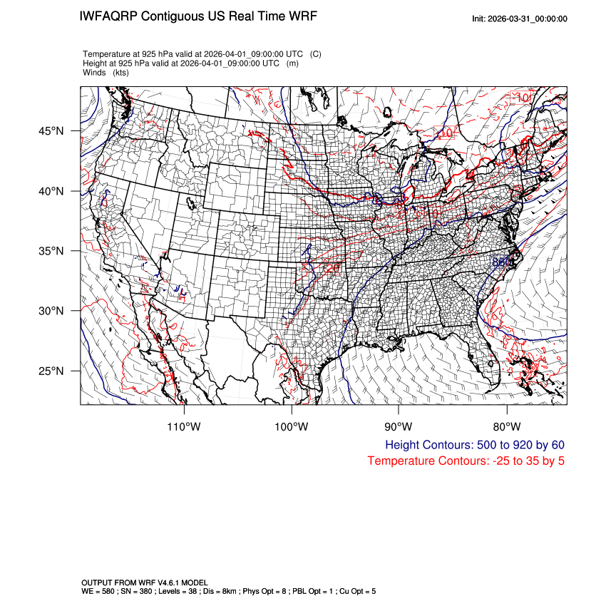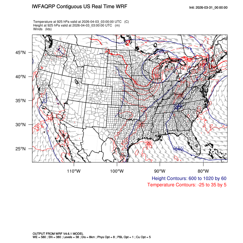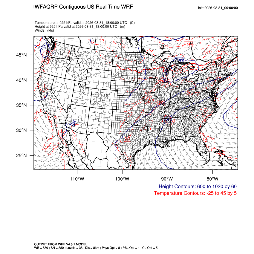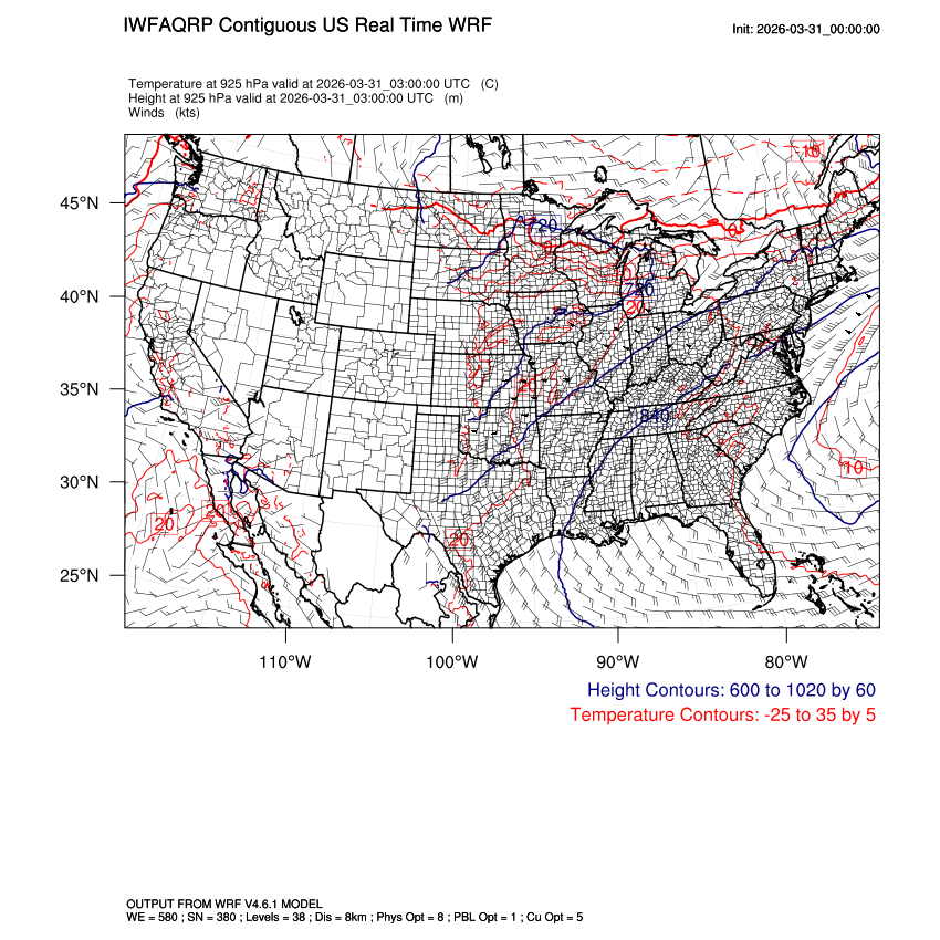 | 925mb Heights, Temperature, Winds LOOP |