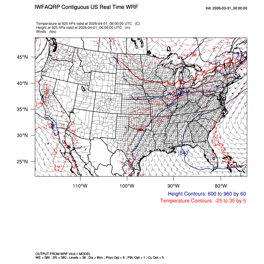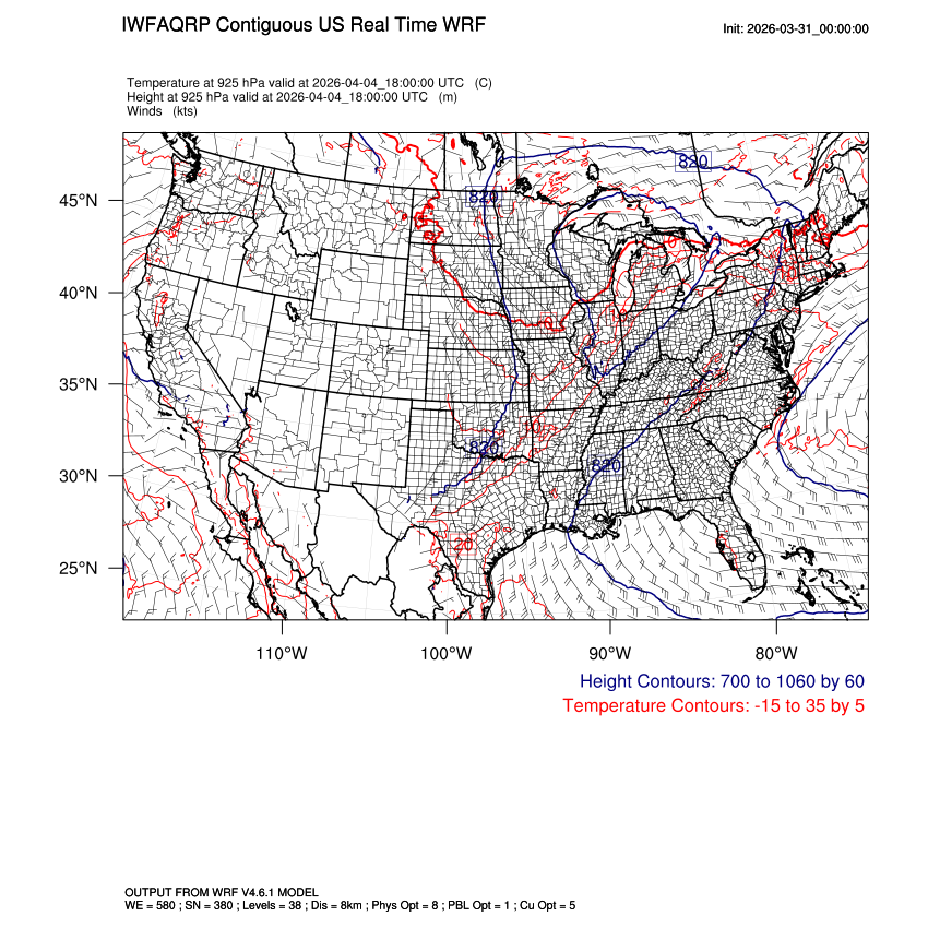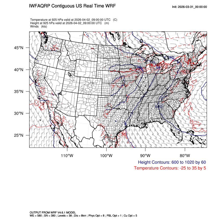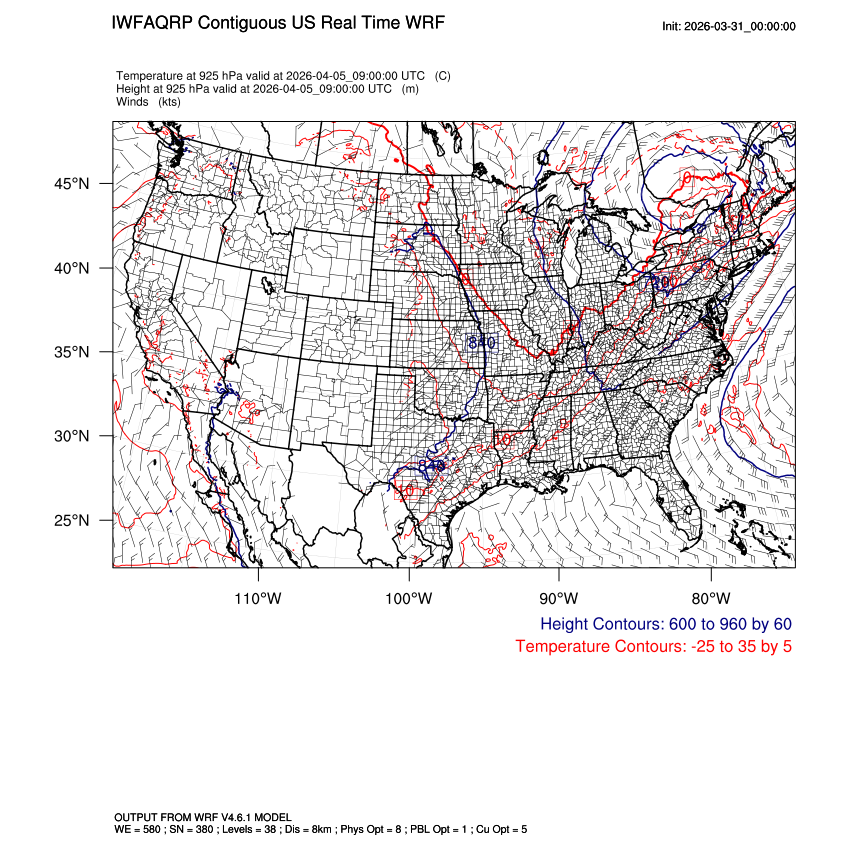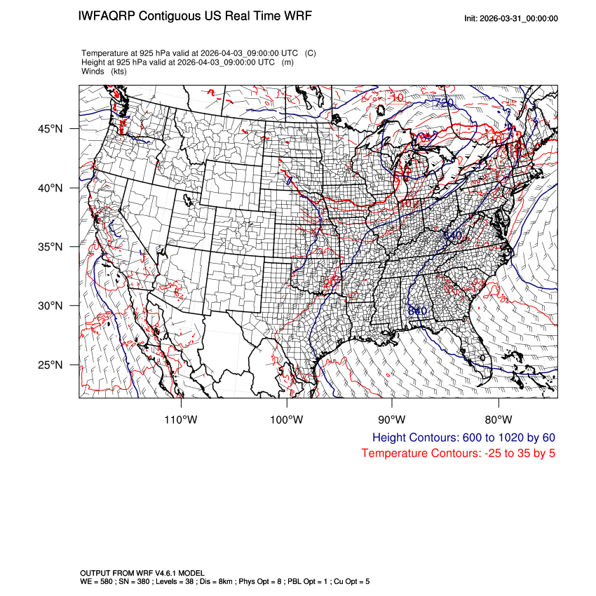 | 925mb Heights, Temperature, Winds LOOP |